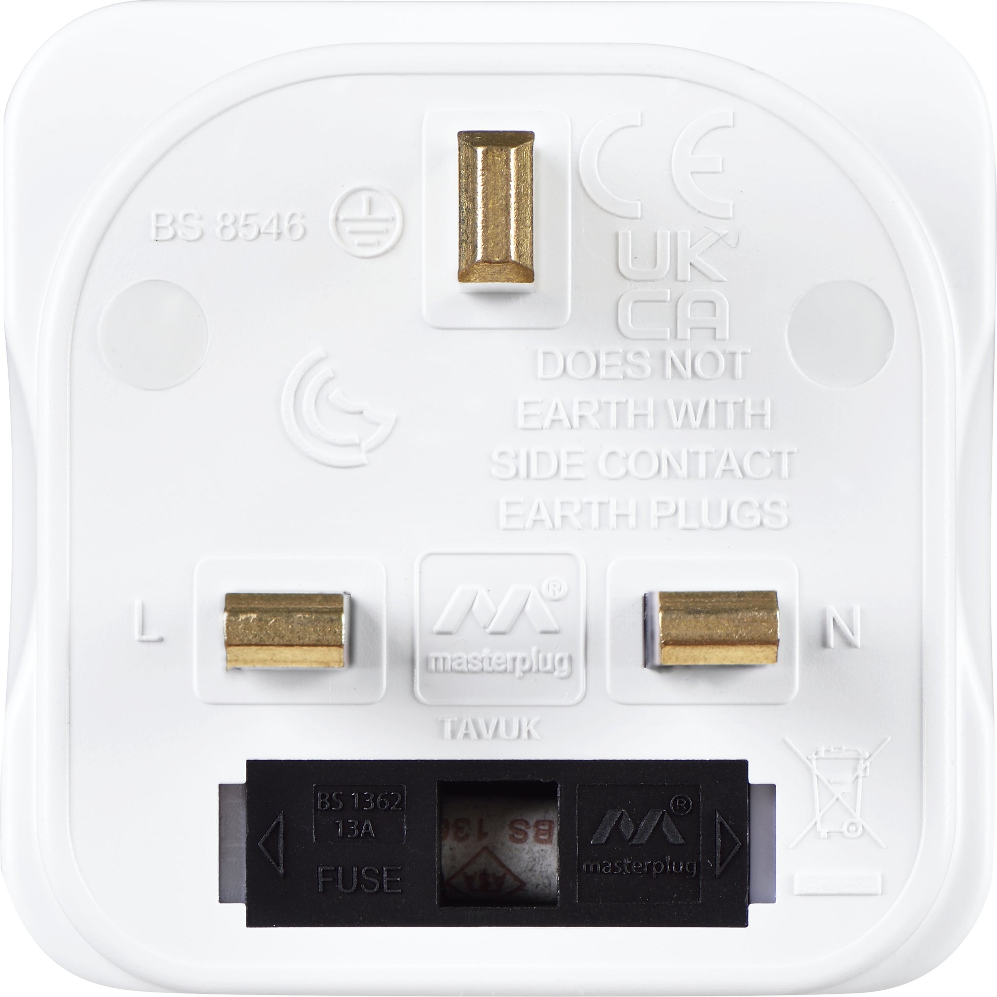 Use this Masterplug travel adaptor when visiting the UK. This adaptor converts European, American, Australian, Middle and Far Eastern and Asian plugs to UK electric.